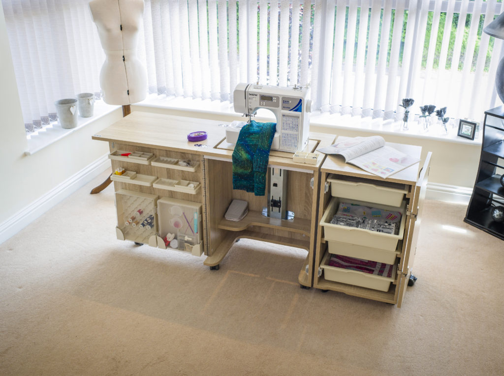 Ergonomically correct, you can sew for longer without the aches and pains that can be caused by sewing in a compromised position. When set into the 'flatbed option', quilting or sewing larger pieces with your machine becomes so much easier.
