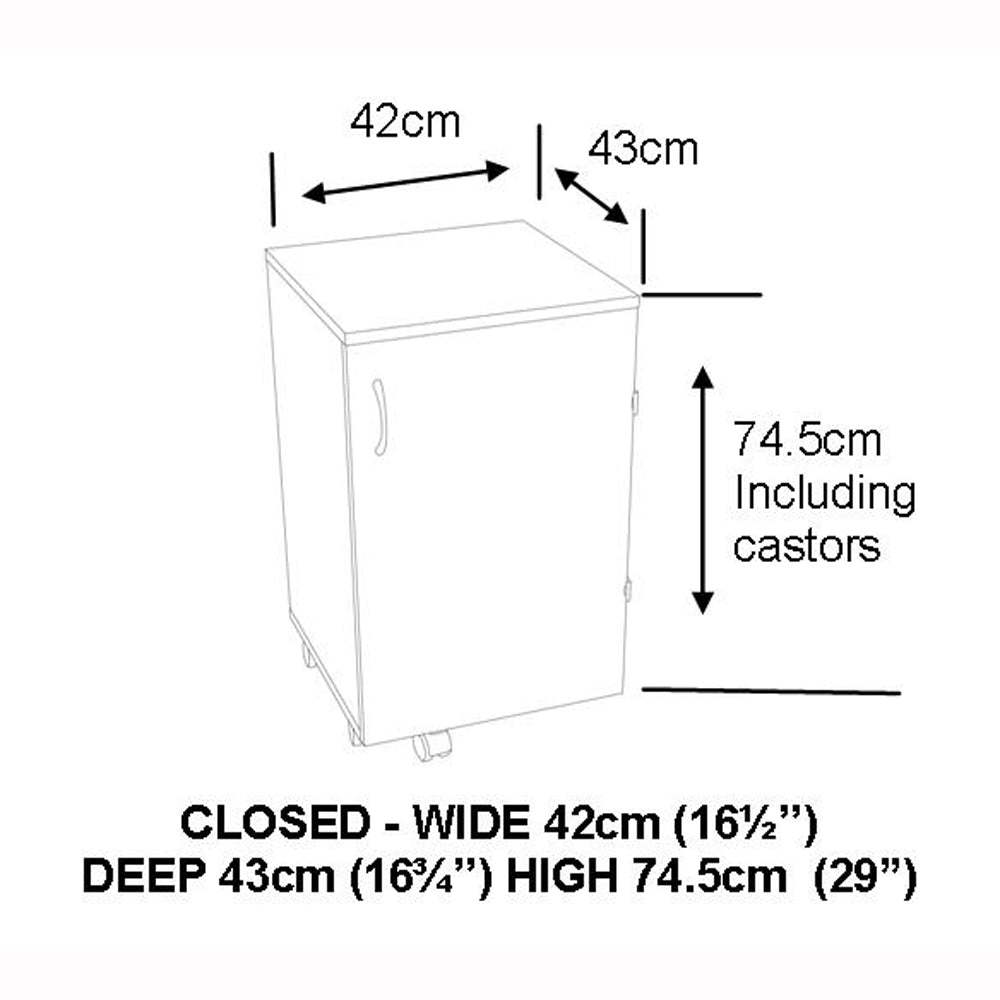 The Rolla Cabinet is 42cm (16½") wide, 42.5cm (16¾") deep and 73.5cm (29") high.