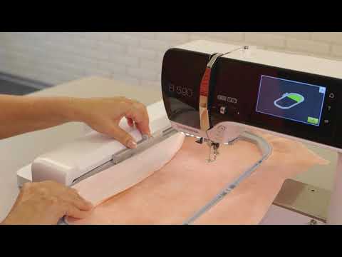 The mega embroidery frame (max. embroidery area 150mm x 400mm) is a professional grade hoop for embroidering extra-large embroidery designs, motif combinations and borders. It has three possible embroidery positions. As a result, the fabric can remain clamped in the frame after completion of the first embroidery area. This allows tidy and accurate working of uniform patterns without the formation of offsets or gaps. Thanks to the template that is included, the fabric can be precisely aligned.