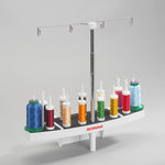 Quick access to a wide range of spools of different colours is a real time saver when working on multicoloured embroidery designs.