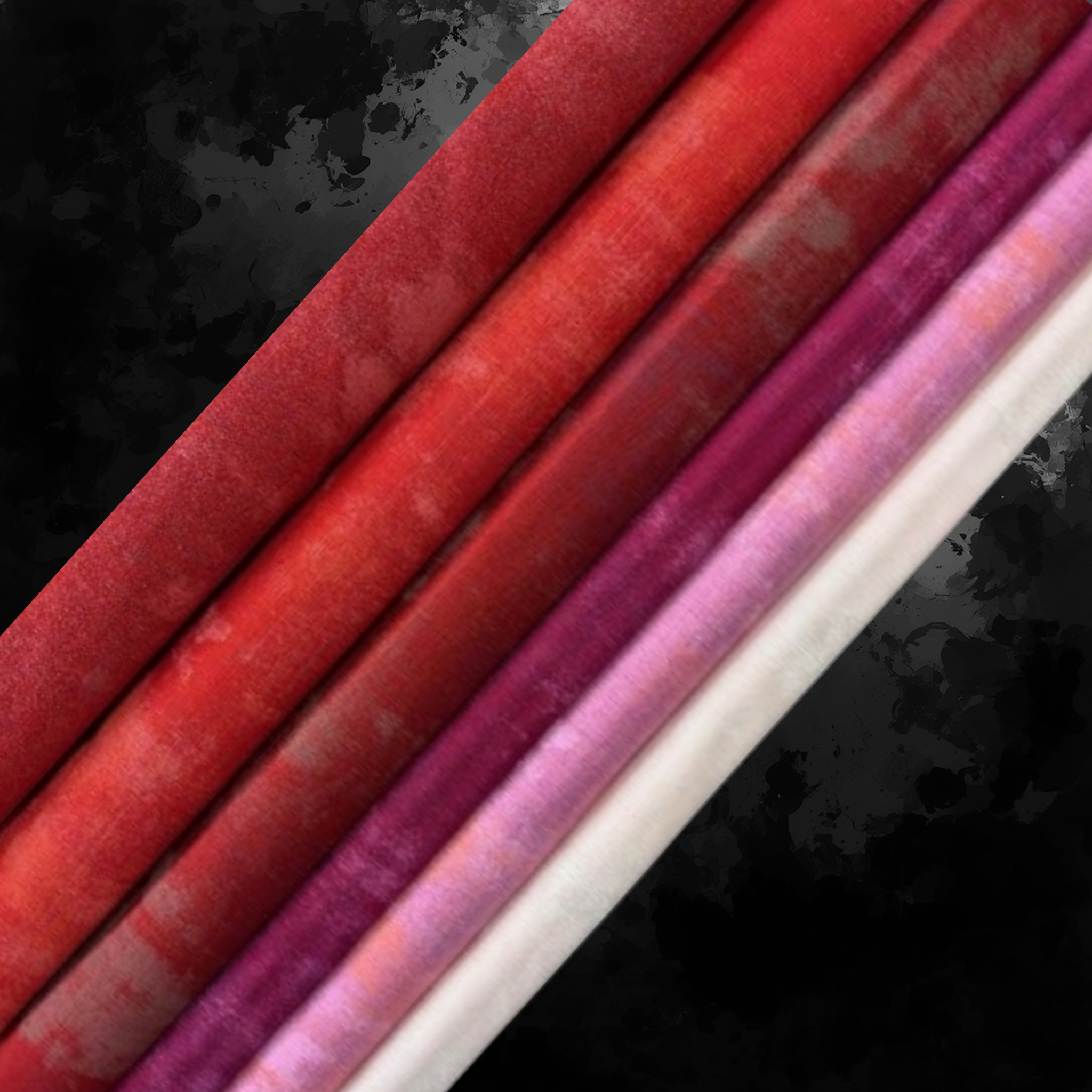 Welcome the romantic shades of Valentines with this beautifully coordinated fat quarter bundle from Moda’s iconic Grunge collection, including a special glitter fat quarter. Perfect for those special quilting projects, patchwork, and creative sewing, these premium cotton fabrics feature Moda’s signature textured finish, adding depth and character to every project.