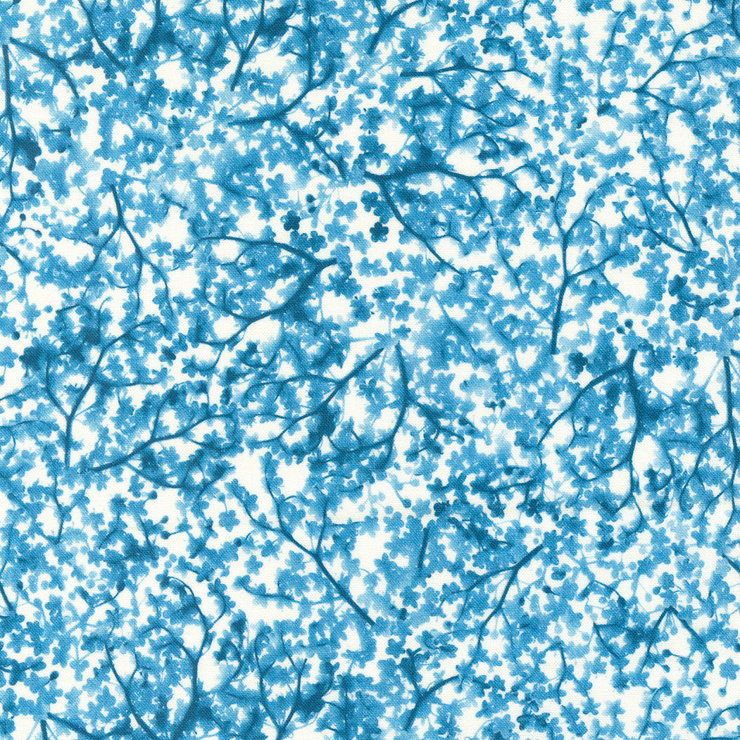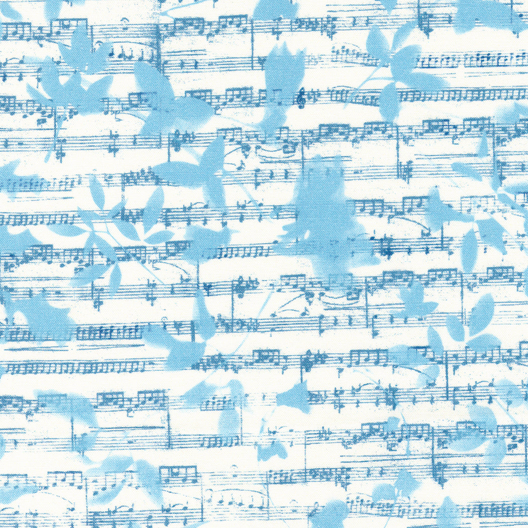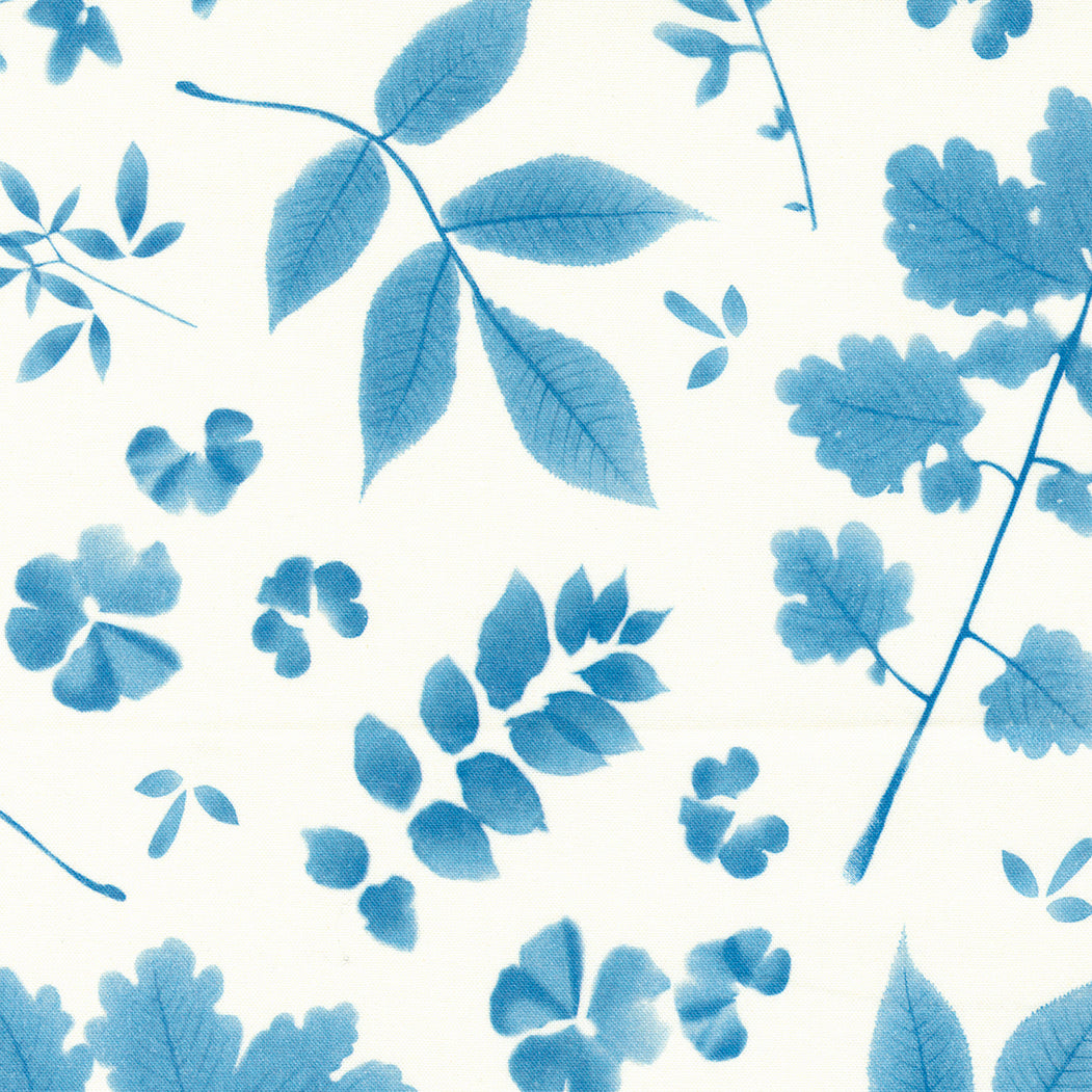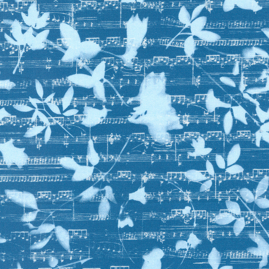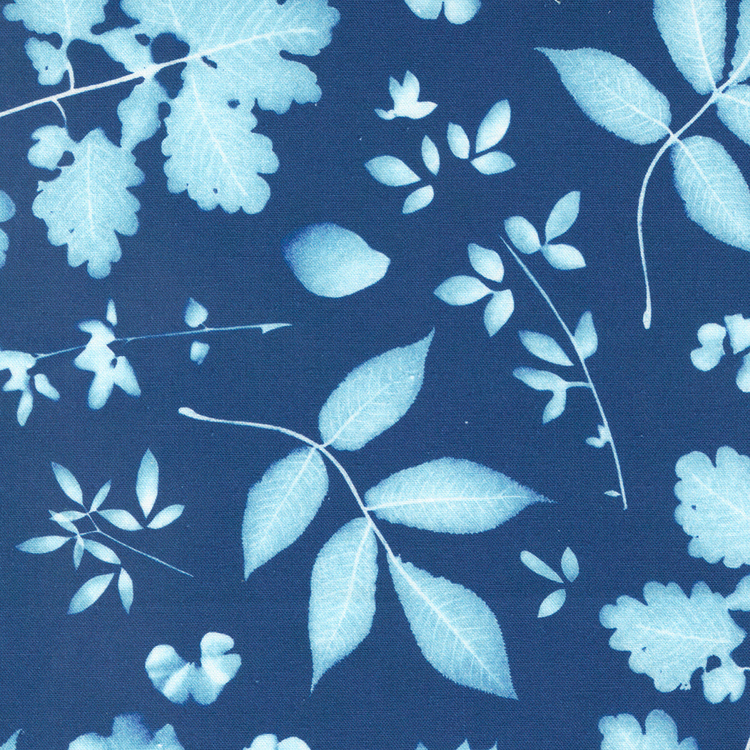 Bluebell features my floral cyanotypes in every shade of blue with gentle greens layered with a subtle lace texture, a musical score and a flowing vintage calligraphy script. Bluebell and the quilts I make with it will forever remind me of those warm days playing in my garden with the sunshine and flowers