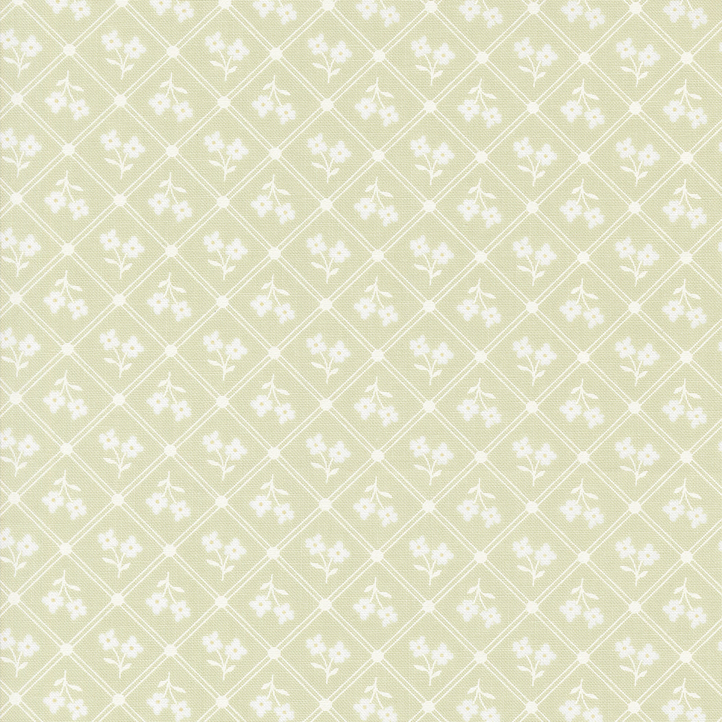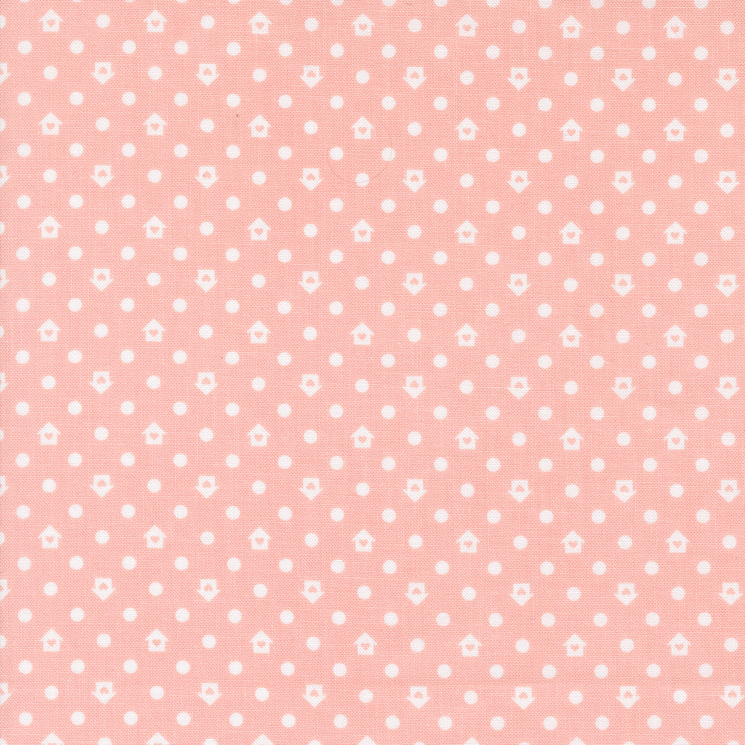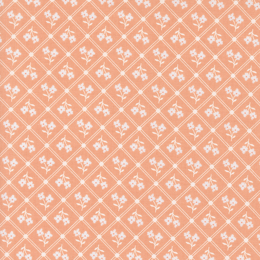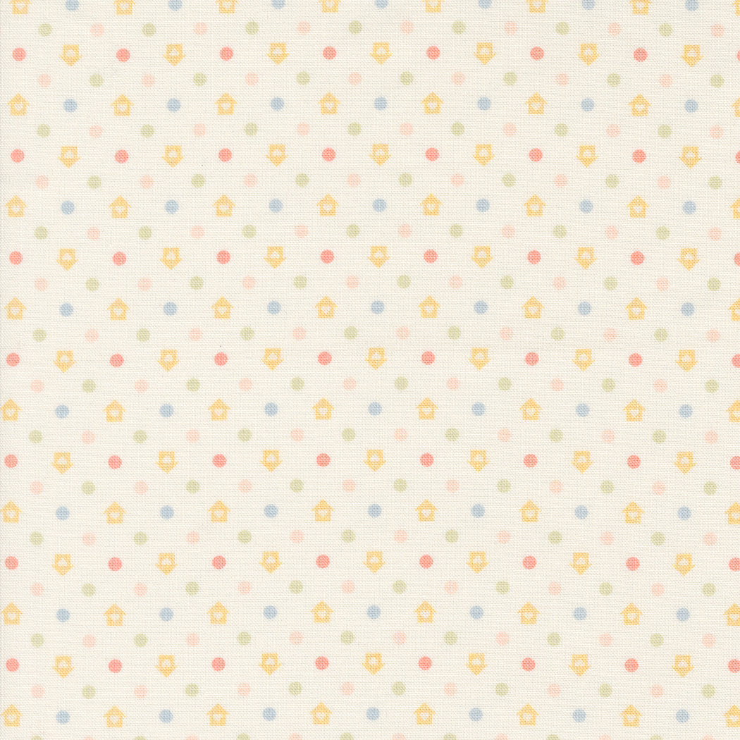 Cottage Charm features an array of soft pink, peach, sage green, buttercup yellow,