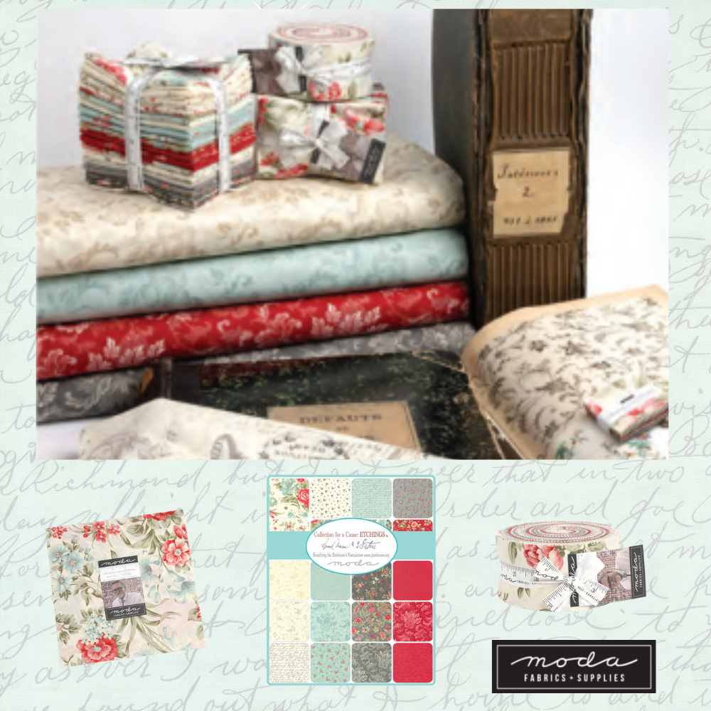Howard Marcus and the 3 Sisters are honoured to invite you to join them to stitch beautiful new projects sure to be cherished heirlooms with a special new Collections for a Cause –Etchings. In homage to the original Etchings collection we have worked together to curate this line of opulent florals and Jacobean designs from our antique mill books and textile archives. Rich, warm shades of crimson, aqua, and stone are set against parchment background fabrics to create a fresh and inviting collection with timeless appeal.