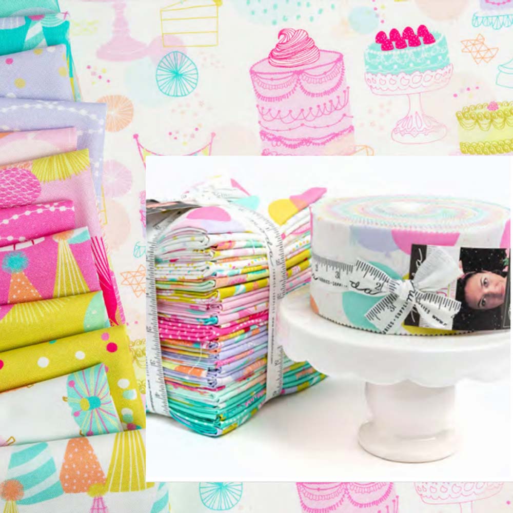Pre-cut pack sizes are 42x 5" Charm Squares, 40x 2½" strip Jelly Roll, 42x 10" square Layer Cake, and 42x 2½" Mini Charm Squares.