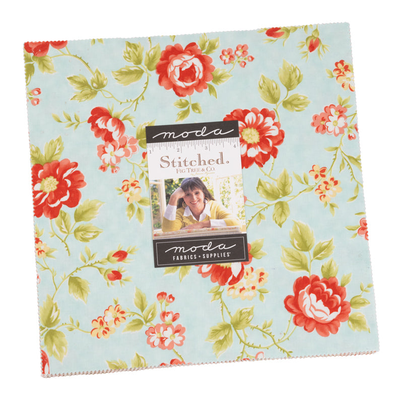 One of the things that I find the most inspirational and fulfilling about quilting is its connection to women of the past. I love to bring back the prints of another era so that we can all use and enjoy them in our favourite “fresh vintage” colours and palettes. For this collection, I was not only inspired by a few of my all-time favourite vintage prints from my collection but also thoughts and images of my sewing studio. My head swirled with pinked edges, tiny traditional stars, and stitch lines. And so, *Stitched* was born. Classic Fig Tree colours in soft muted tones of warm reds and aquas mixed with golden yellow, soft greens and taupes, harkening back to the palette of one of my much earlier lines, Whimsy. This collection makes me want to hide in my quilt room for days and days, and do nothing else but sew. Who is with me?