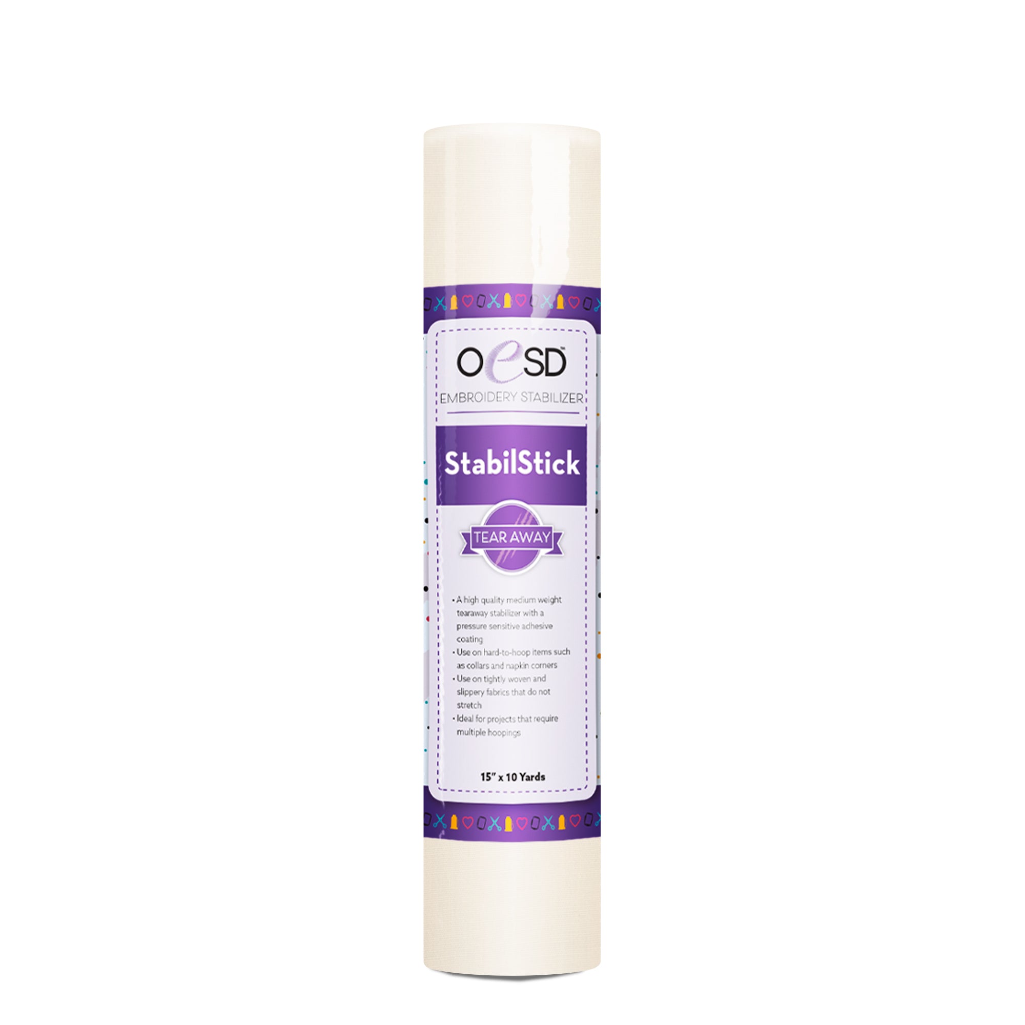 A high-quality medium weight tear-away stabilizer with a light adhesive coating, for use with tightly woven, slippery fabrics that have no stretch. Ideal for hard-to-hoop items such as collars and napkin corners, or projects that require multiple hoopings.
