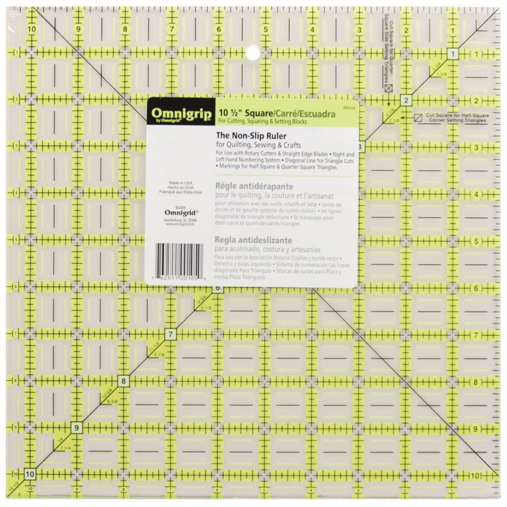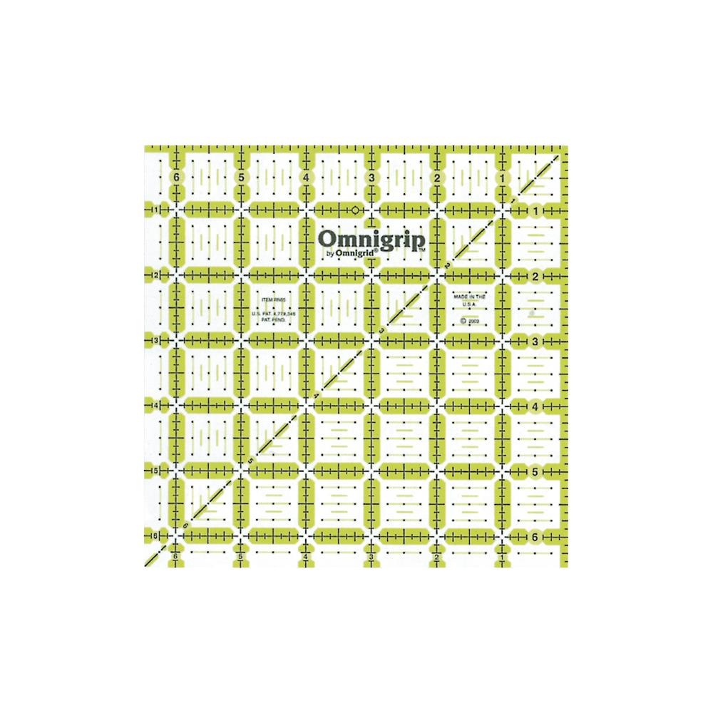 Omnigrip by Omnigrid features basic size rulers with a fabulous feature: non-slip backs! Omnigrip also features a left- and right-handed numbering and angle system and transparent, neon green double-sight lines.