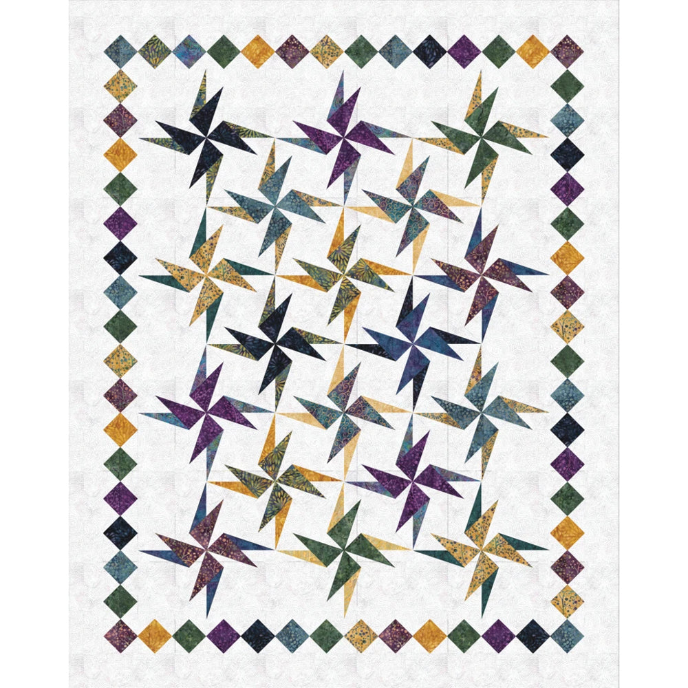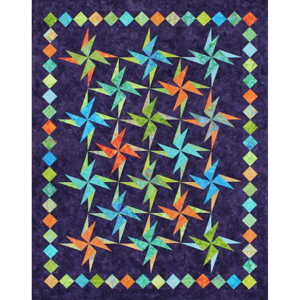 Olé! Spinning around and around this unusual star will amaze you with its simple construction; making spikey stars has never been so easy! By using the Split Rects and Corner Pop together you get a unique combination of sharp points that are perfect every time. This project is perfect for the stack of 10” squares awaiting its day to shine.
