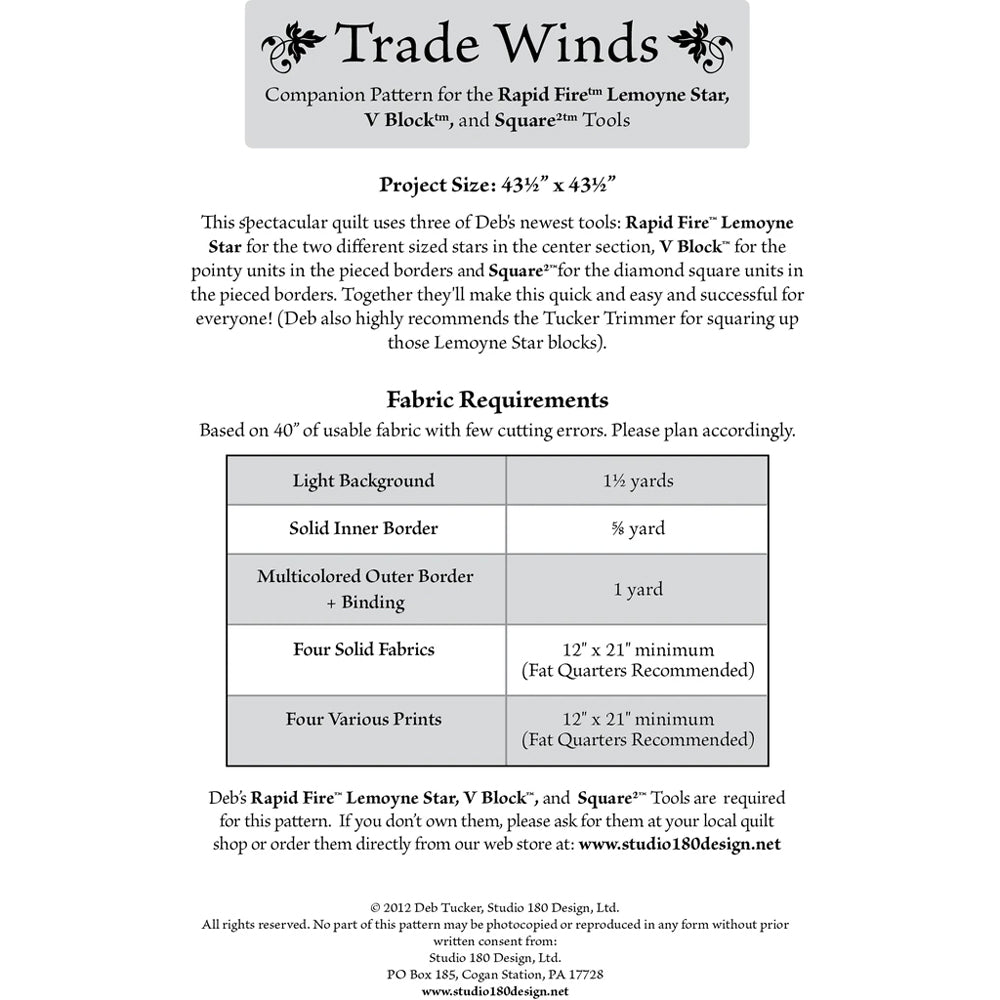 This spectacular quilt uses three of Deb's tools: Rapid Fire Lemoyne Star for the stars in the centre section, V Block for the pointy units in the pieced borders and Square Squared for the diamond square units in the pieced borders. Together they'll make this quick, easy and successful for everyone! It'll blow you away!