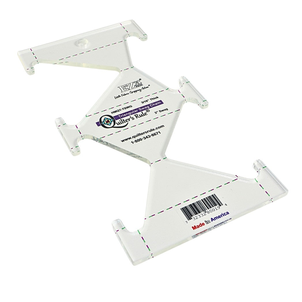Create stunning triangular chain designs quickly and easily with this versatile template from Quilter's Rule. Perfect for adding geometric interest to your quilts, this template makes it simple to stitch consistent triangular swag patterns for blocks, borders, and decorative elements.