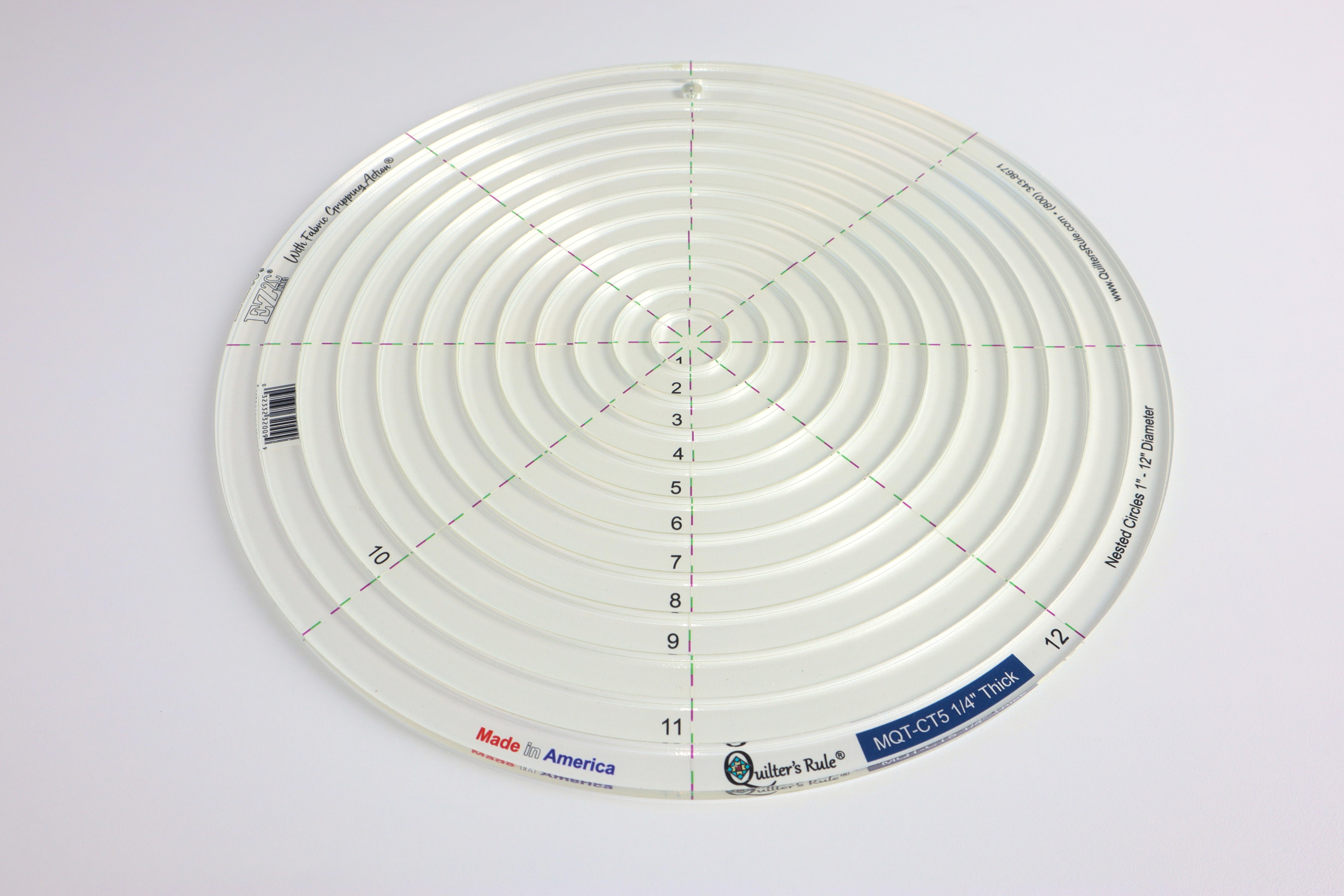 Quilting templates with all the registration marks allow you to be as creative with your machine quilting as you wish to be. 11 nested circle templates starting at a 1" circle going up to a 12" circle.