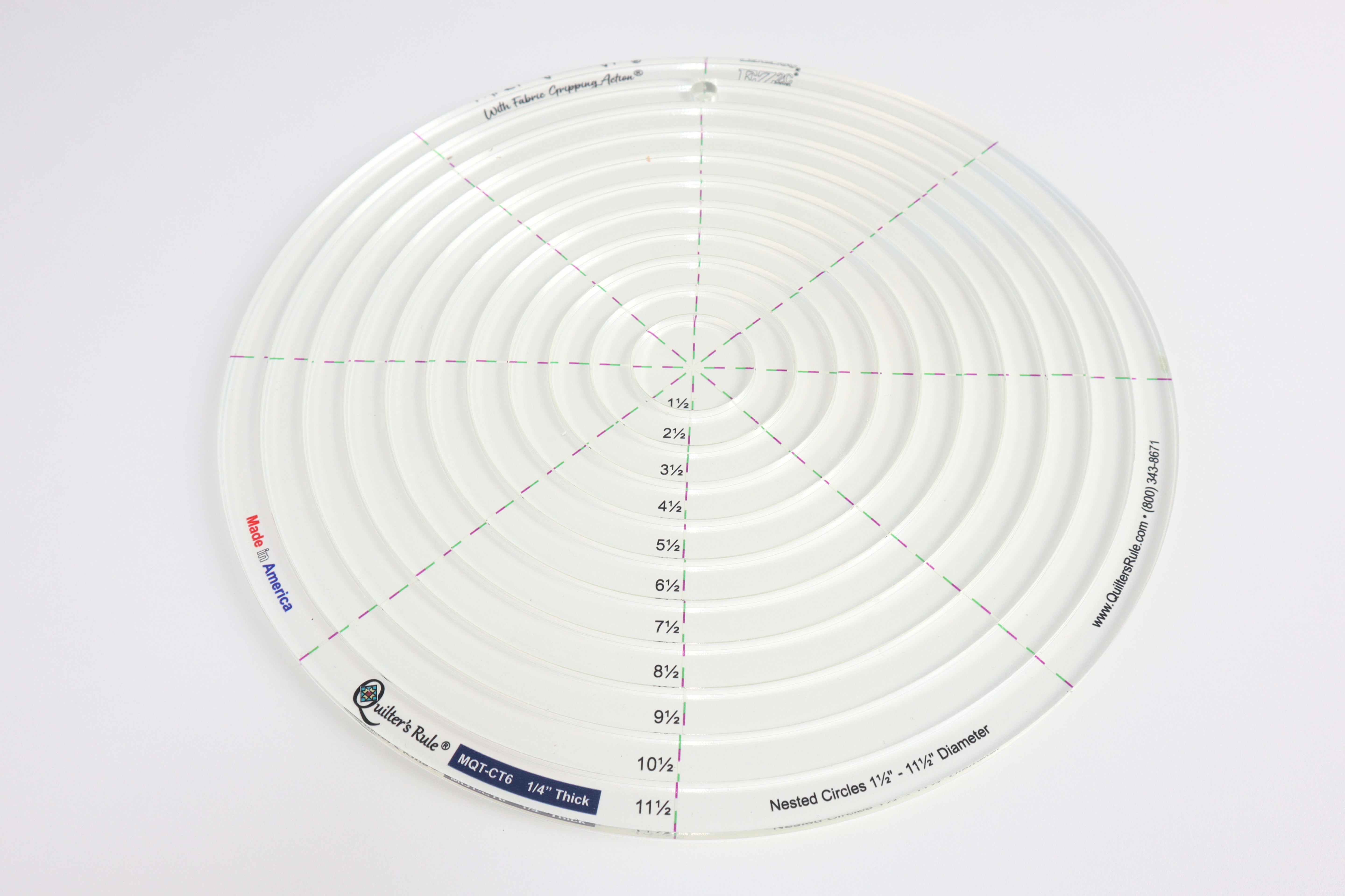 Quilting templates with all the registration marks allow you to be as creative with your machine quilting as you wish to be. The 11 nested circle templates start at a 1½" circle going up to an 11½" circle.