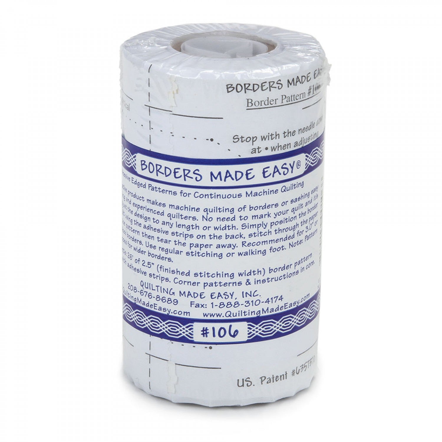 Adhesive-backed patterns for continuous machine quilting. Requires a regular stitching foot or walking foot. Recommended stitch length 8-10 stitches per inch.