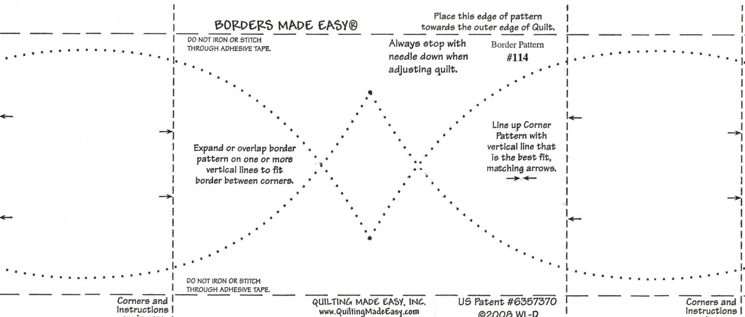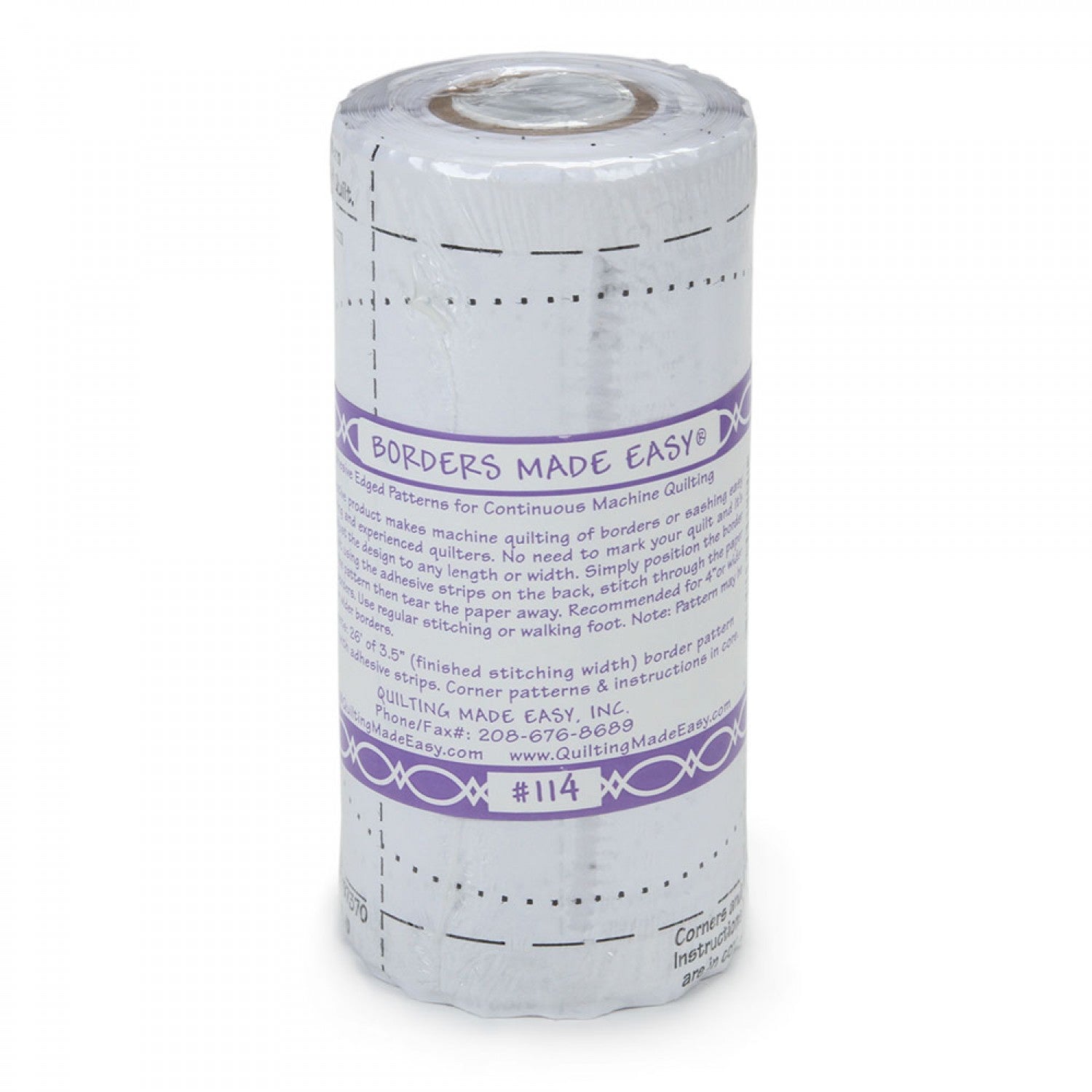 Adhesive-backed patterns for continuous machine quilting. Requires a regular stitching foot or walking foot. Recommended stitch length 8-10 stitches per inch.Corner patterns included in core.3½" Border 26' Roll 1=Easiest recommended for beginners