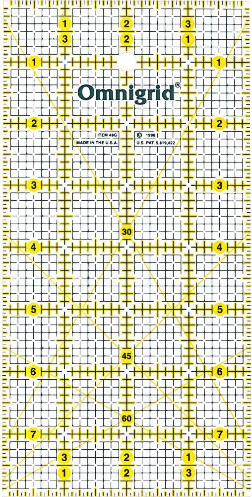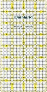 The 4” x 8” ruler has the following standard Omnigrid® features: