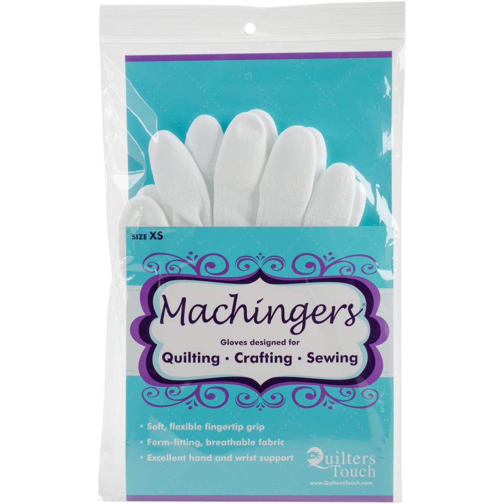 The perfect tool to use when quilting on a domestic machine. Made of fine knitted breathable nylon, they are comfortable enough to wear for hours. Formfitting, seamless design allows you to keep your gloves on while clipping and changing threads, adjusting fabric and adding or removing pins. The fingertip coating gives full control with less resistance and drags on fabric and a supportive wrist band to help reduce fatigue.