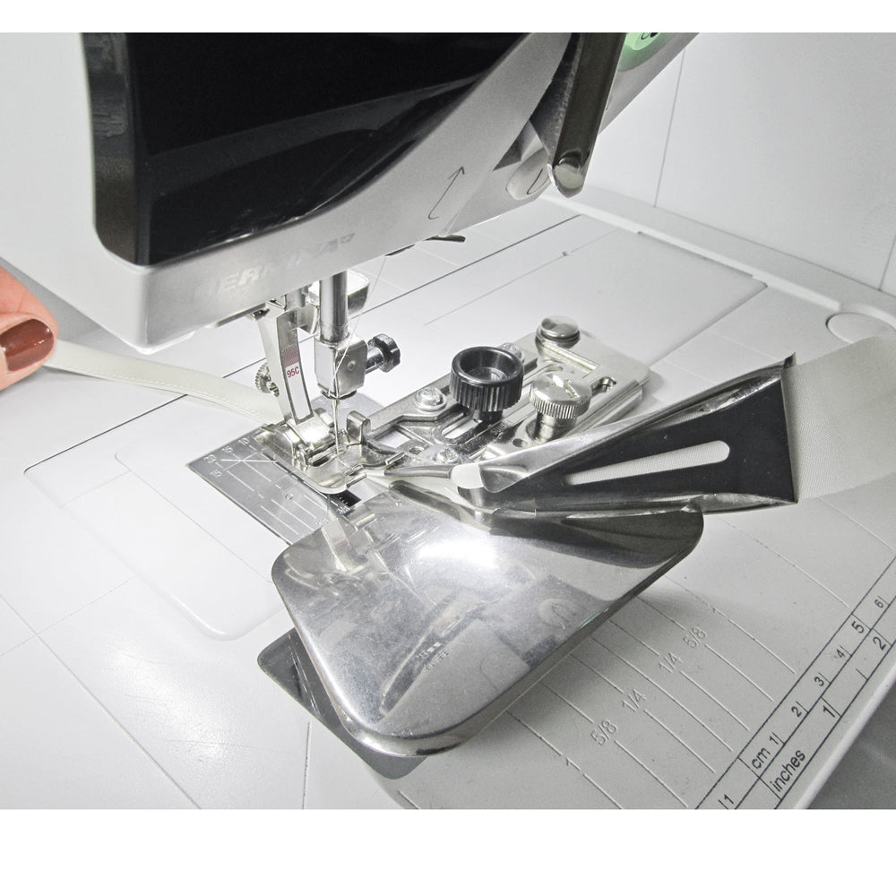 Available in a choice of three different widths, the attachment allows you to work with pre-folded tape 13mm, 20mm or 25mm