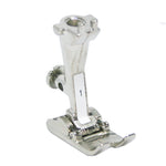 The reverse-pattern foot is an all-purpose foot for straight stitching and 'open' decorative stitch patterns. The presser foot is versatile and suitable for heavyweight fabrics like denim, wool and corduroy. It is also ideal for various utility and decorative stitch patterns, ribbing and hems. There is an indentation in front of and at the back of the needle opening to facilitate forward and reverse stitching.