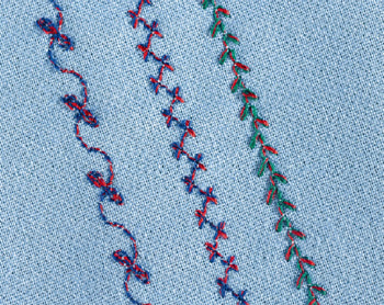 Feature: Universal needle with two eyes. Use: for two different threads for added texture and shading. in embroidery and topstitching. When threading two threads ensure that the two spools rotate in different directions to prevent tangling.
