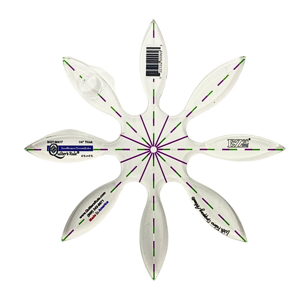 The Quilter's Rule Mini Sunflower is a simple single-shape quilting template that brings cheerful, floral designs to your ruler quilting projects. This 4 7/16" x 4 7/16" template features registration marks to help you be as creative with your machine quilting as you wish to be.