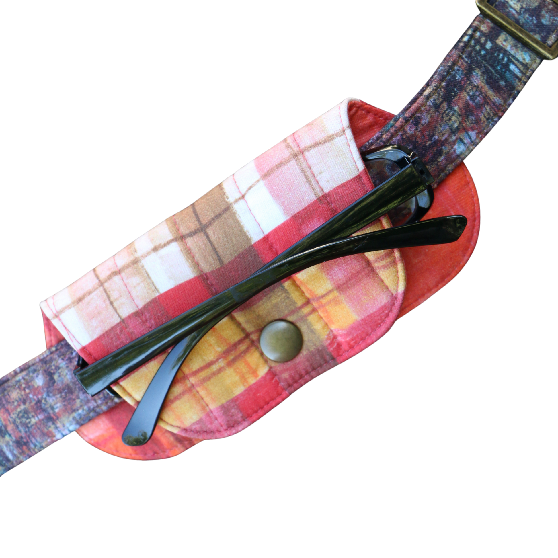 Choose from a simple foldover wrap or a case with a flap, both fastening securely with snaps. For storing bulkier items, the double case style features slip openings at the front and back, allowing it to expand to hold two pairs of glasses or a selection of sewing tools, pens, and accessories.