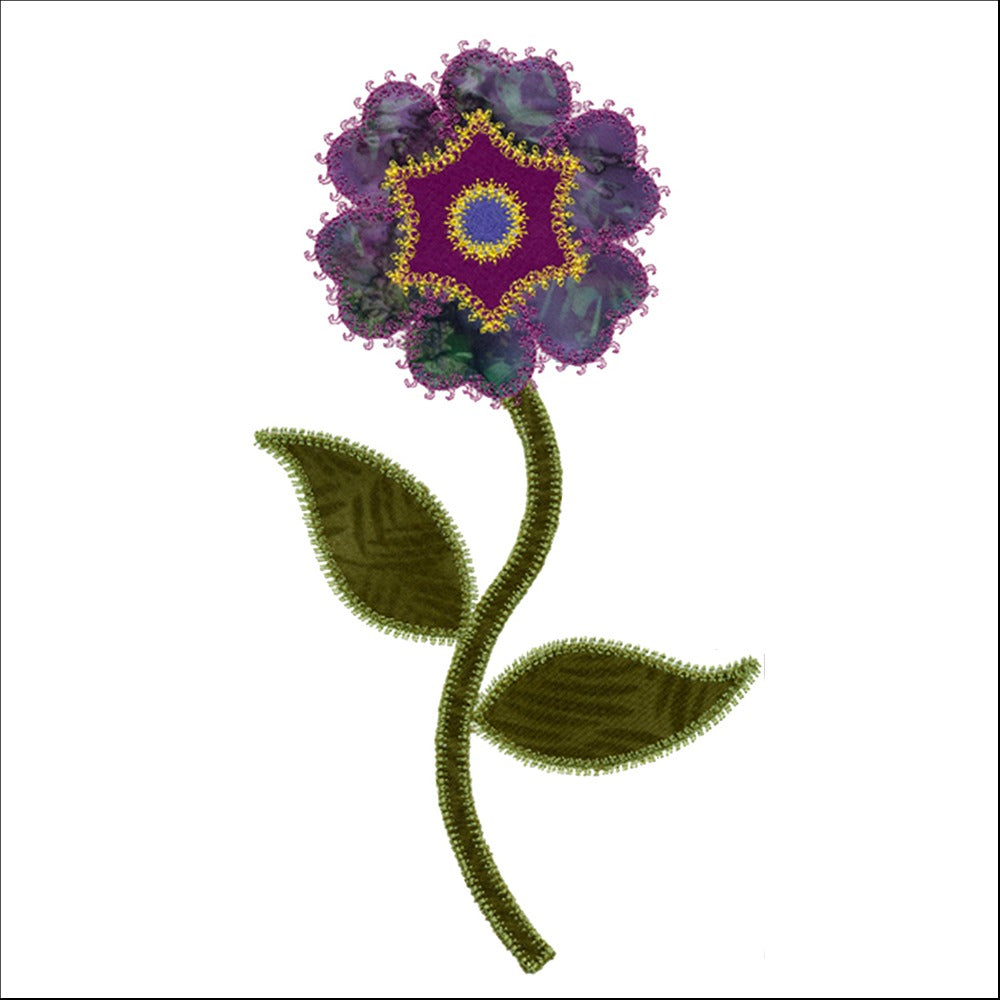 This machine embroidery applique set is designed to be used with the AccuQuilt GO! Round Flower die (55007).