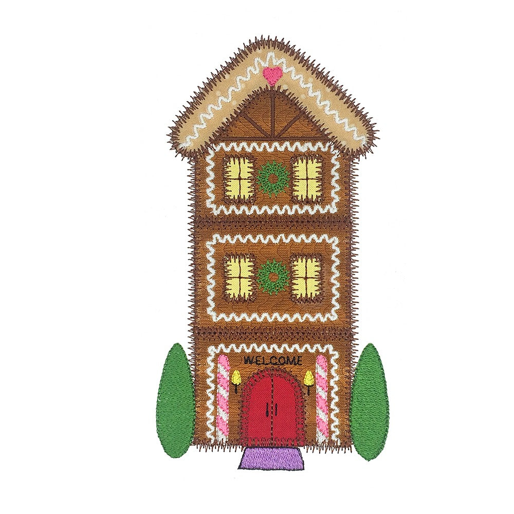 4 designs in this set. 4 different houses to choose from. Each house was created using a variety of decorative motif applique edges and embellishments.