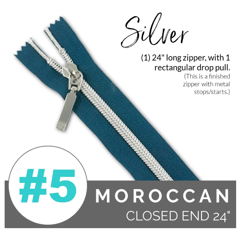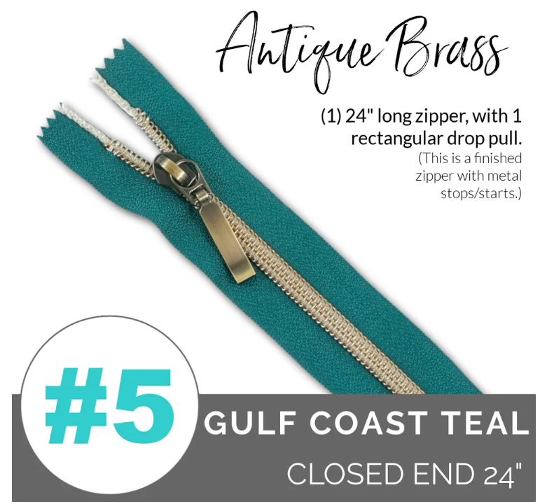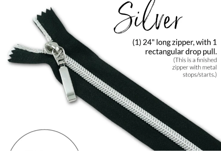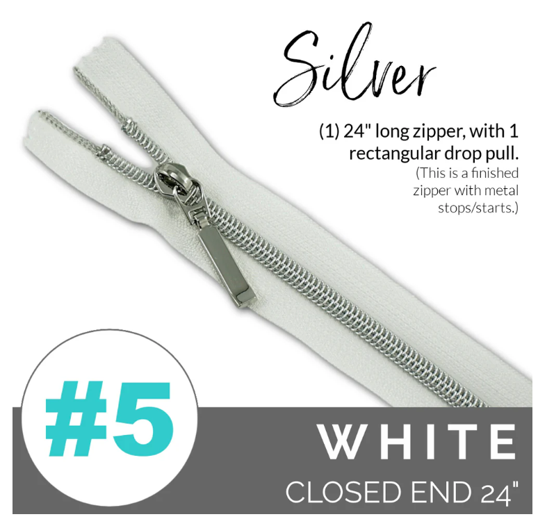 SIZE #5 (5mm Coil) closed end Metallic Coil.  Comes with one rectangle drop pull attached! These are finished zippers that can be cut down to the length you need, or used as is. The are complete with metal stops/starts. The #5 coil is perfect for areas where you want a heavier zipper, like a bag opening. Our zippers are a high quality, durable, zipper that are rated for indoors or outdoor.