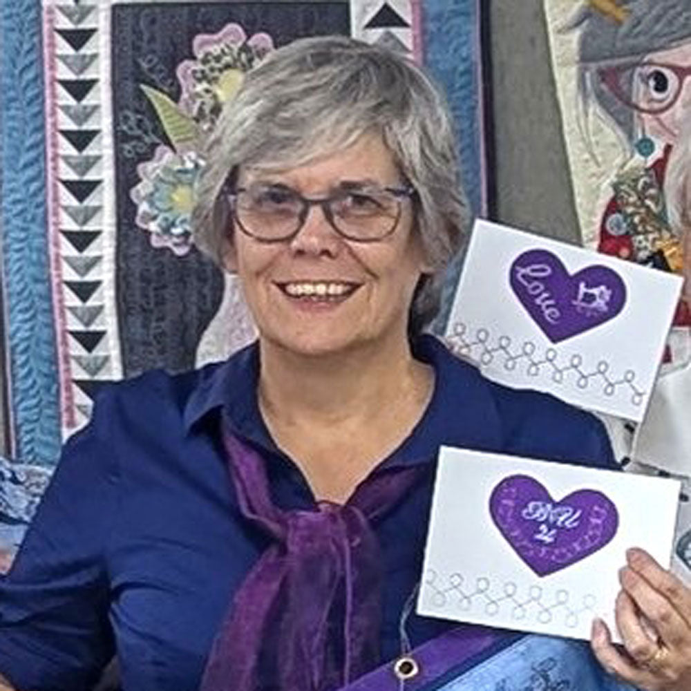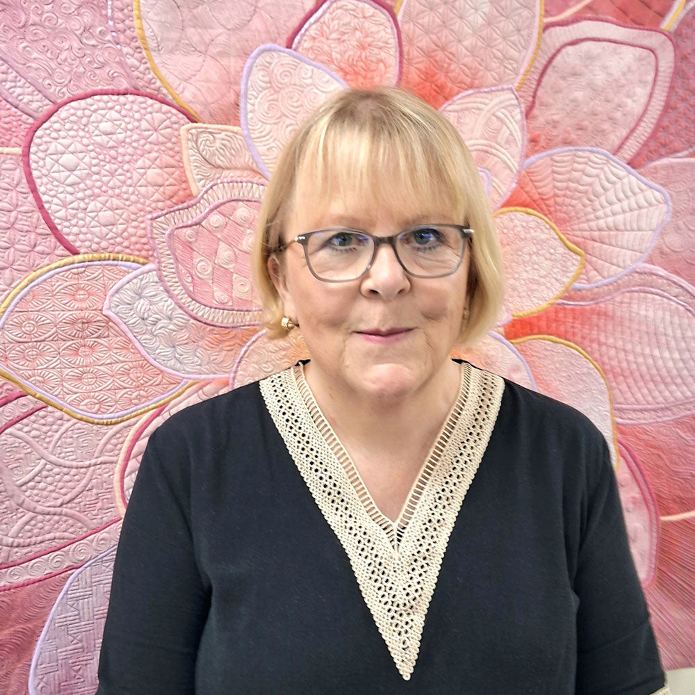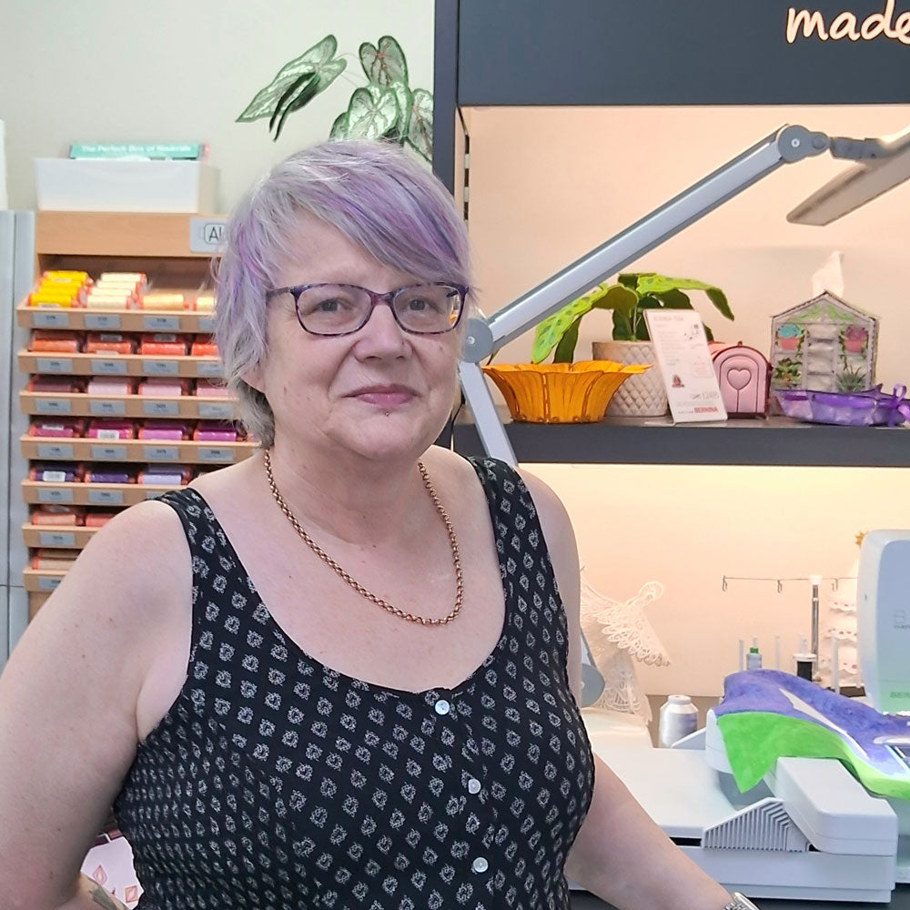 An expert in machine embroidery and bag-making, Jo presents classes on those subjects in our studio. You'll recognise her easily she always wears purple! Jo works with brands like OESD, By Annie and Moda, and runs the sew-along Facebook group 'Sew with Jo'.