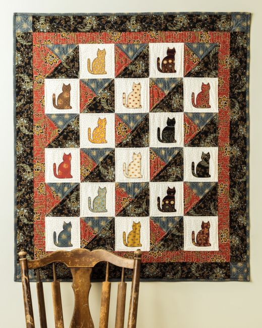This design is exceptionally well suited to using scraps or dipping into your fabric stash. Simply apply fusible web to the wrong side of your fabric before cutting, and the cat shape will be ready to fuse and stitch straight away.