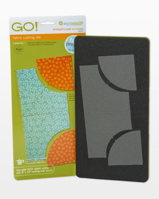 Cut curved pieces quickly with the GO! Drunkard's Path die. Each sewn unit measures 3½" finished, you combine four units to create a 7" finished Drunkard's Path Block. Like all quilting blocks, there are endless variations in design depending on your layout and colour choice. Get ready for never-ending inspiration with the GO! Drunkard's Path die!