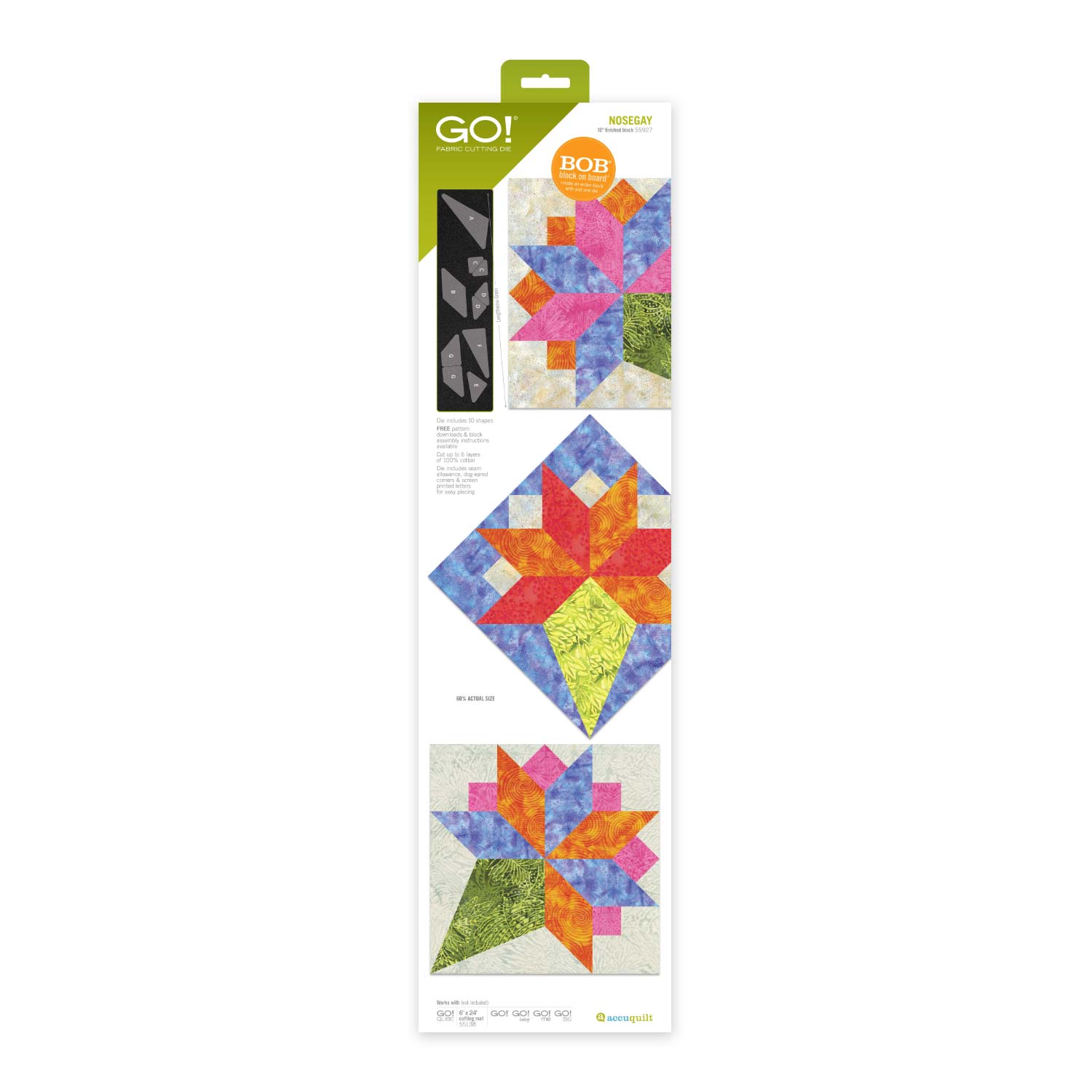 As a Block on Board (BOB®) die, Nosegay is specially designed to cut all the shapes needed for a complete five colour, 10" finished block in a single pass through your GO! Fabric Cutter. This greatly reduces preparation time while ensuring every piece fits together precisely.