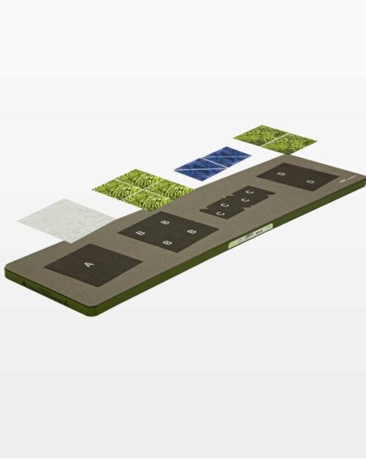 Plaited Block includes screen-printed letters on the die for easier piecing and organisation of shapes.