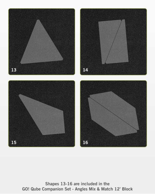 Expands the number of quilt blocks the GO! Qube Mix & Match 10 " Block (55797) can make from 72 to 216 or more when combined with GO! Qube 10" Companion Set-Corners (55798).
