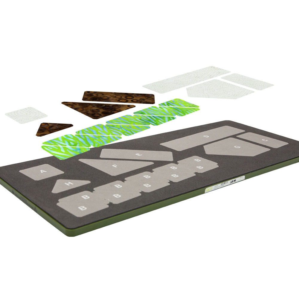 Goose Tracks includes screen printed letters on the die for easier piecing and organisation of shapes.