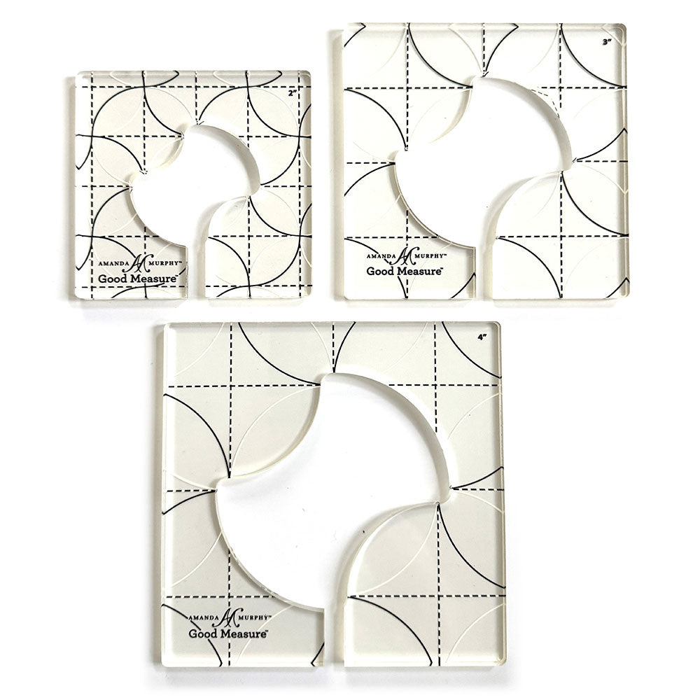 Each ruler features etched grid lines for precise placement and a non-slip backing for enhanced control while quilting. The three graduated sizes make it easy to add beautiful curved designs to your quilting projects with ease and confidence.