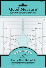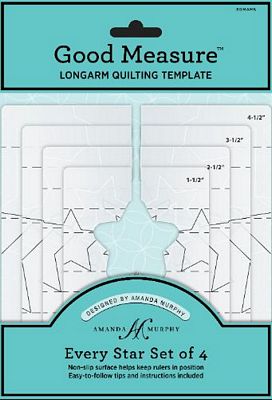 Amanda Murphy's Quilting Templates feature a special nonslip back and clear marking in two colours. With generous surface area, you'll find then easier to hold. Their design makes them easy to read and makes fabric simple to cut! The Every Star set of four templates gives you creative freedom. Meandering with stars, quilting a line of stars, or quilting medallions will be fast and easy. The possibilities are endless! Lower those feed dogs and get quilting!