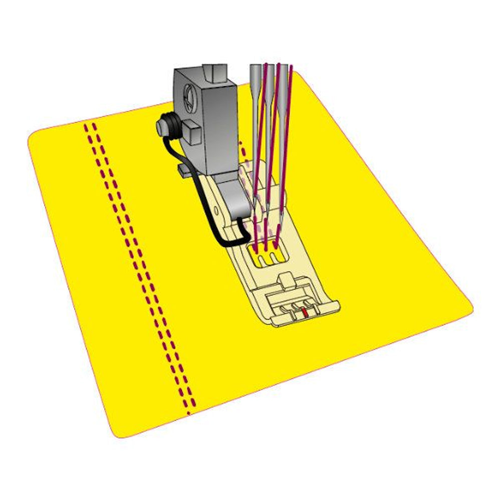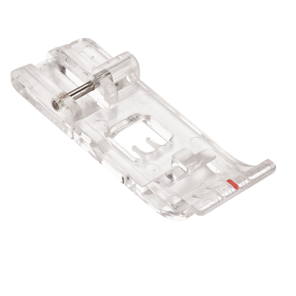 The clear sole affords the perfect view of your coverstitch or chainstitch project. It is ideal for decorative seams which have been previously tailor-tacked, as well as for positioning at the beginning or end of a seam.