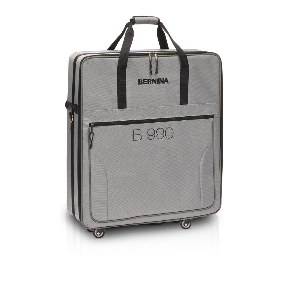 The embroidery module bag XXL for the B990 is designed to be solid and lightweight. The advanced padding system and the high-quality outer material provide thorough protection for your embroidery module. The embroidery module bag can be attached to the XL trolley’s telescopic handle or carried separately with an adjustable shoulder strap.