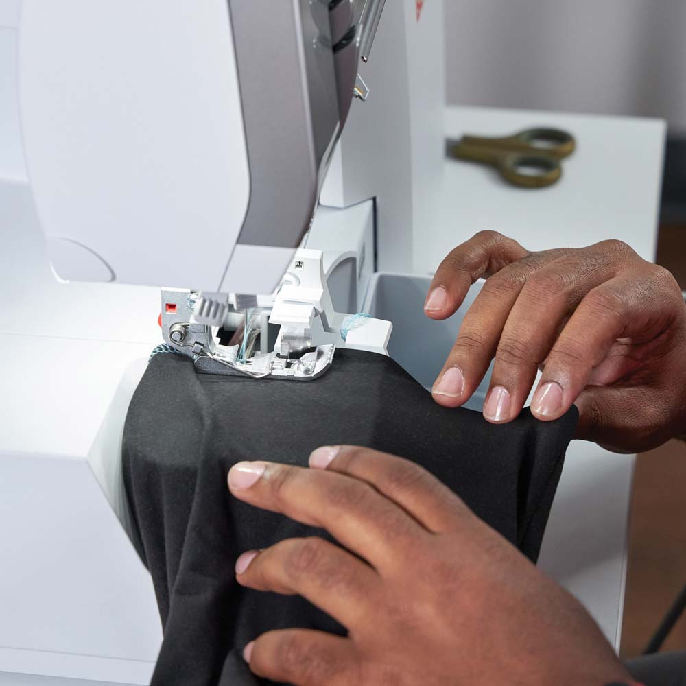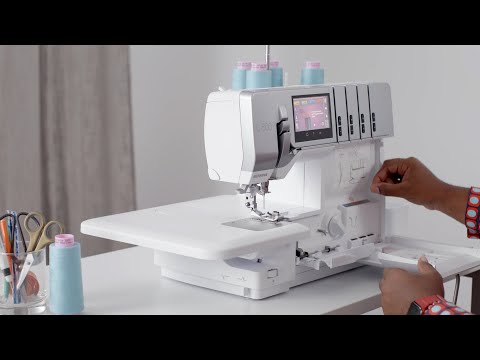 The integrated Needle Threader and automatic needle stop up function make threading the needles simple. You can easily change from an overlock seam to a rolled hem or flatlock seam in no time because the thread remains in the same threading path.