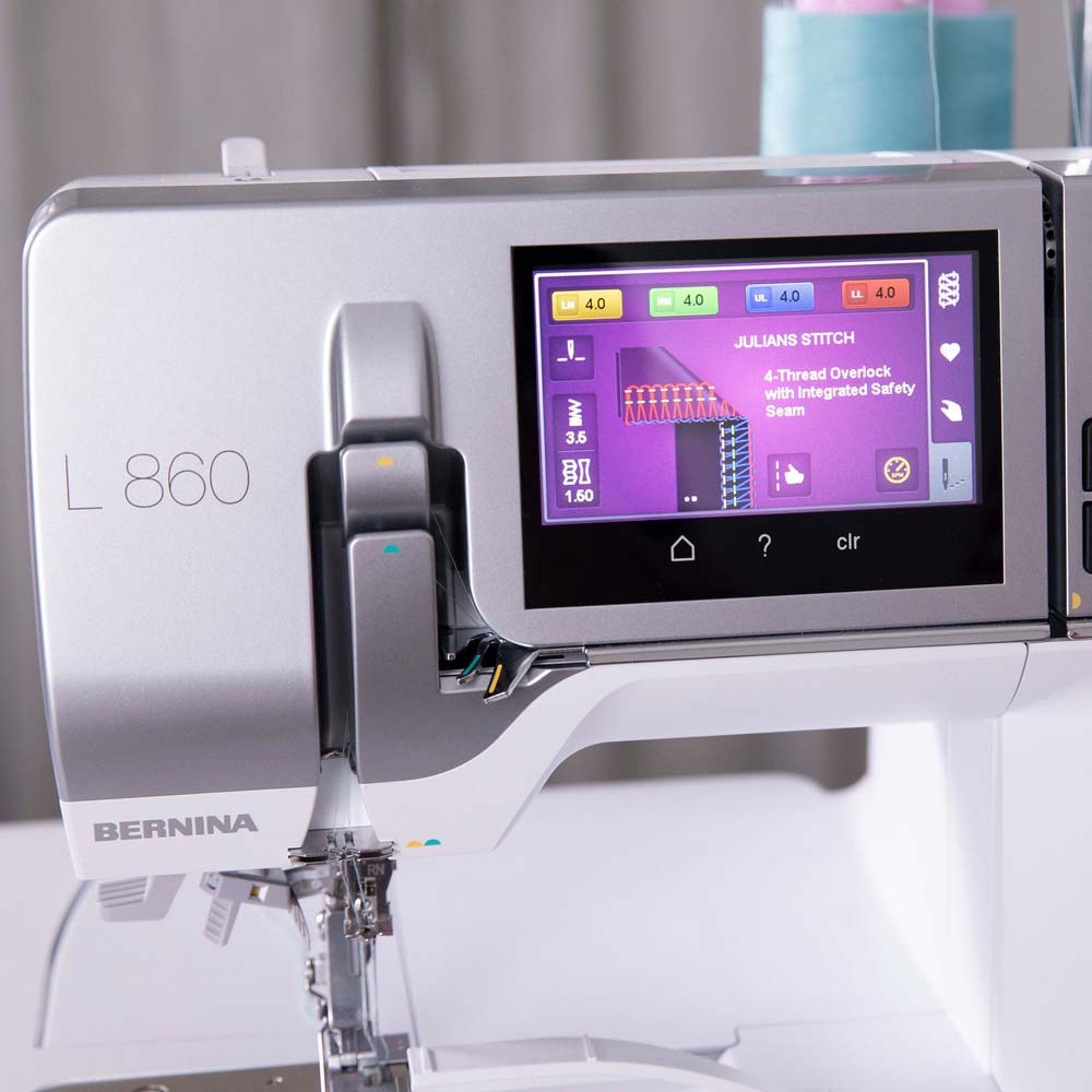 Not only can you sew quickly, but you can also sew stitch-by-stitch, making the flawless production of precise lines and curves a simple process. Plus, you will enjoy how extremely quiet the BERNINA L860 sews. Best of all, you can easily adjust the maximum and minimum speed at any time on the colour touch screen.