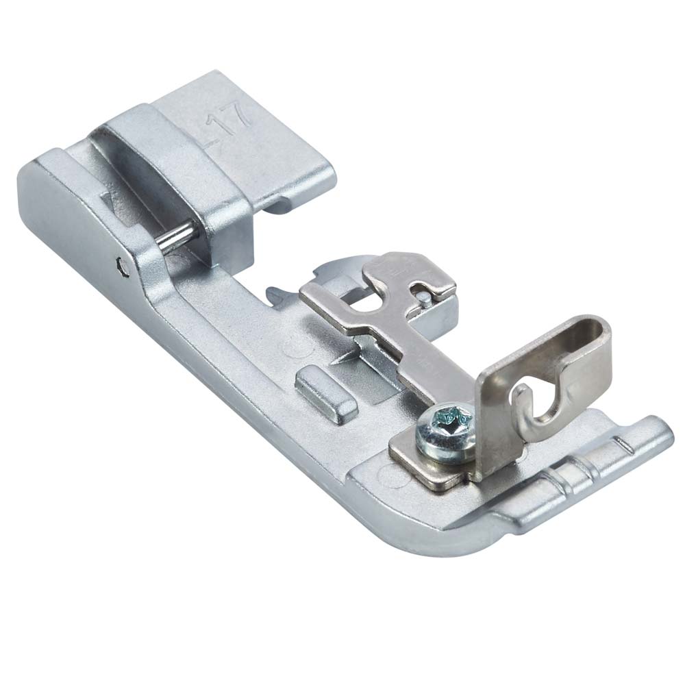 The Cording foot is used for stitching thin cord, wire, fishline, perlé thread or fine yarn up to a maximum diameter of 2mm into a rolled hem.