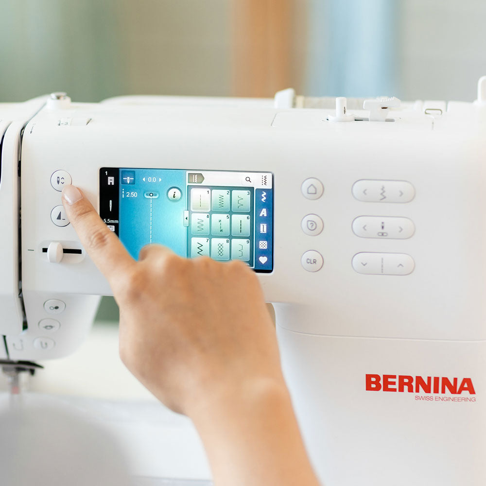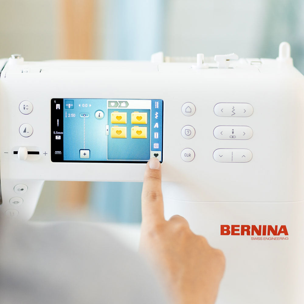 You can select the desired stitch via the touch screen and adjust the stitch width and stitch length. You can also combine or change decorative stitches and then save them. The Sewing Consultant assists Select with individual settings. Simply select the fabric and the application, confirm, combine or change decorative stitches and then save them. The Sewing Consultant assists Select with individual settings. Simply select the fabric and the application, confirm and the machine will set the stitch and make suggestions for all other settings.