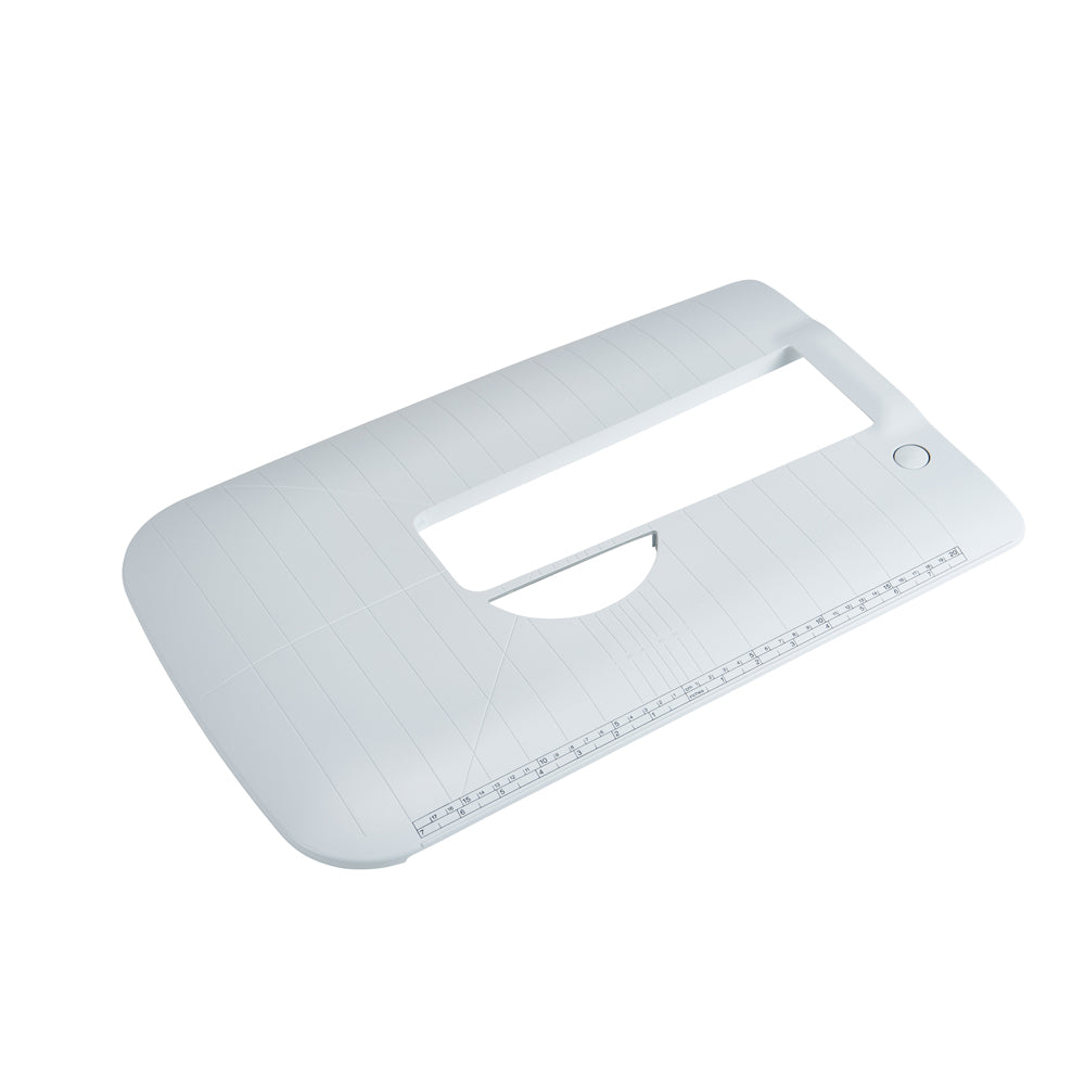 The Bernina extension table offers a whole range of advantages for comfortable and precise sewing. Attached to the free arm, it increases the existing workspace. At the same time, its special shape ensures that free-arm functionality remains available and that fabric feeds smoothly during sewing.