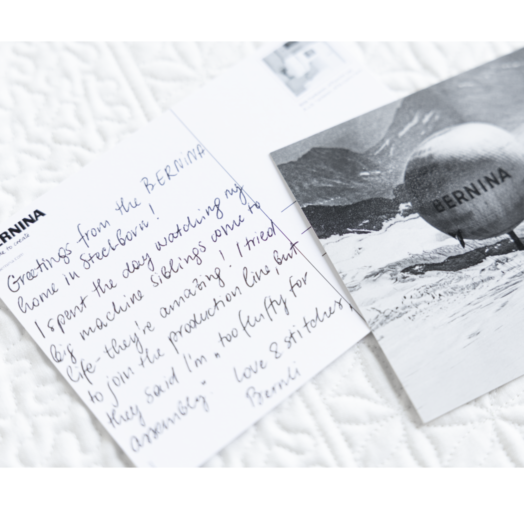 Share a piece of sewing heritage with the BERNINA postcard set. Featuring beautifully printed designs that celebrate creativity and tradition, these premium-quality cards are perfect for sending to fellow sewing enthusiasts or framing as decorative accents in your studio.