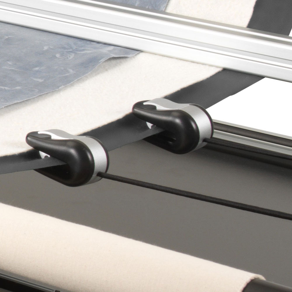 Bungee Clamps provide even tension for your quilts when used with your Bernina Pro or Studio frame. These clamps are  comfortable to use and are simple to attach and remove from fabric, thanks to the specially designed profile. You can also get nice and close to your Q series machine head because of the clamps' design: just push the clamp over your fabric to attach it and press the easy-release button when you want to take it off.
