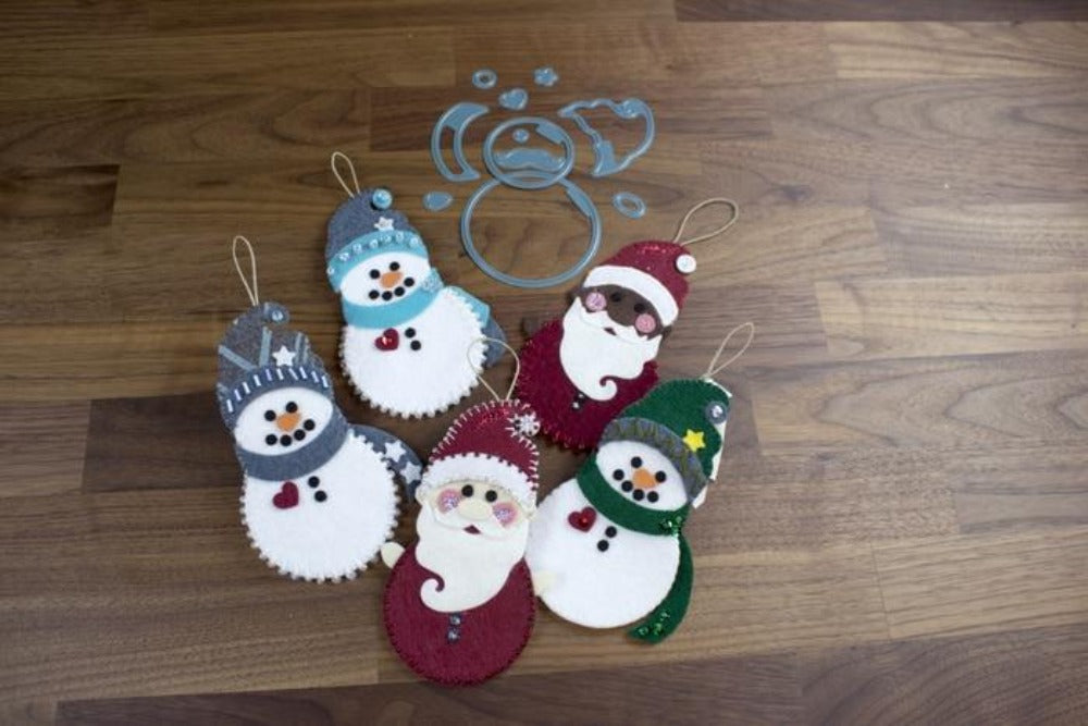 11-piece Santa/Snowman Premium Fab Die creates adorable Snowmen or Santas for all of your Holiday projects! This set includes many shapes to help you personalise quilts, bags, pillows, clothing, stockings, ornaments, and more with the Christmas spirit! Cut perfect and precise shapes every time, even through multiple layers of fabric.