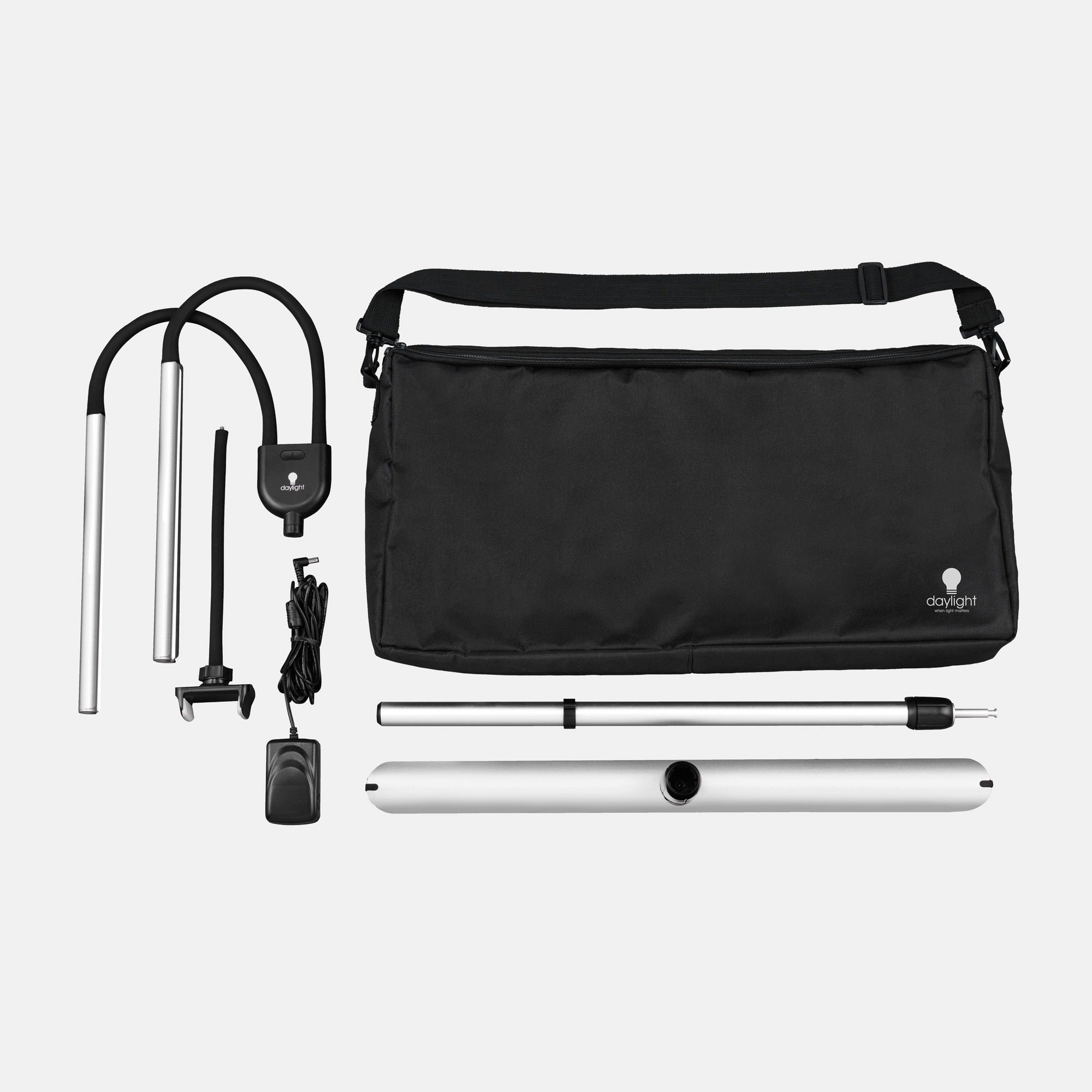 Flexibility meets stability and portability, weighing in at a tiny 2.4kg the Daylight Gemini neatly folds and packs into its carry-bag. Gemini delivers high contrast and accurate colour matching, whilst keeping cool. It’s dual shade flex to wherever you need them to shine. With a slim structure and upscale design, Gemini is also lightweight yet stable, flexible yet holds any position.