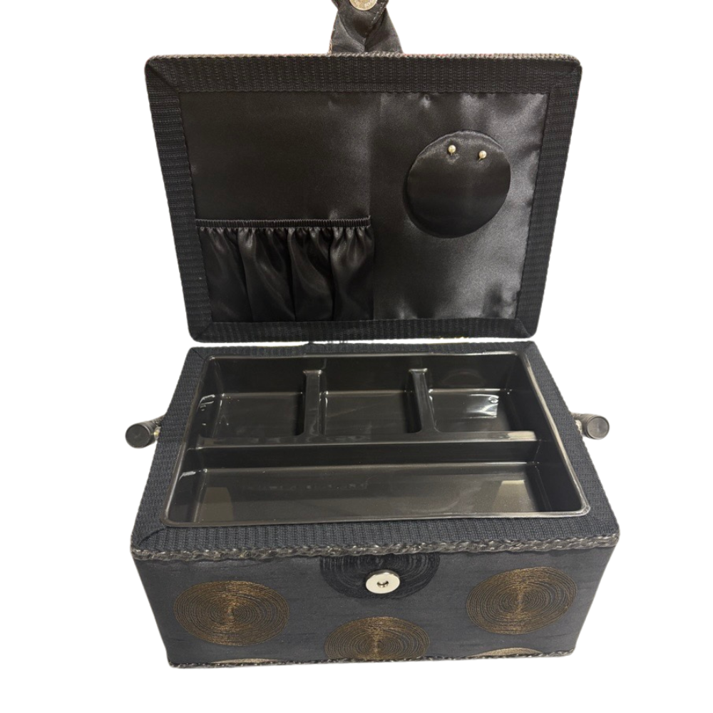 - Striking black finish adds style to your sewing box